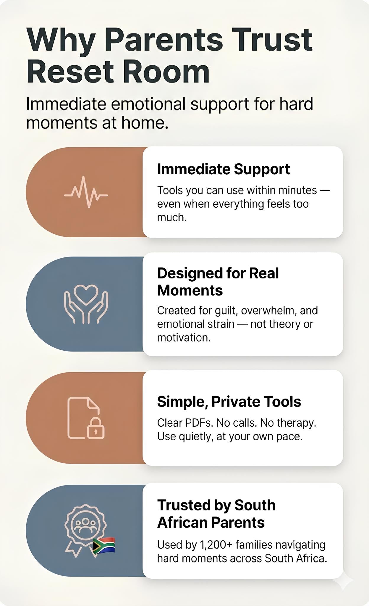 Yes. Reset Room is designed with South African parents in mind β emotionally, culturally, and practically.